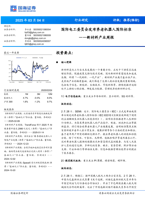 【国海证券】【20250304】2025年03月07日更新-【国海证券】新材料产业周报:国际电工委员会发布养老机器人国际标准-30页