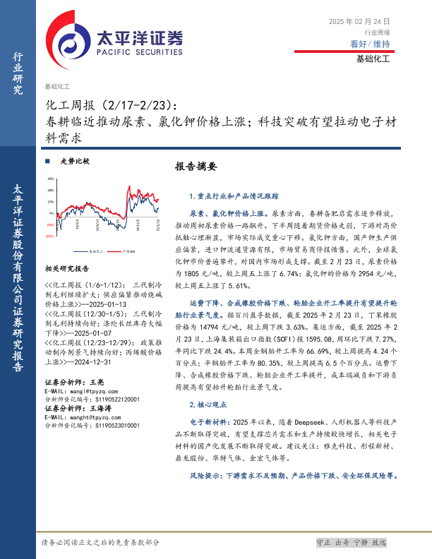 【太平洋证券】【20250224】2025年03月03日更新-【太平洋证券】化工行业周报:春耕临近推动尿素、氯化钾价格上涨;科技突破有望拉动电子材料需求-32页