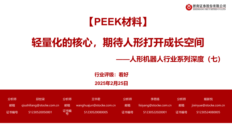【浙商证券】【20250309】人形机器人行业系列深度(七):【PEEK材料】轻量化的核心,期待人形打开成长空间-31页