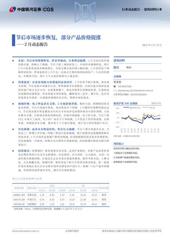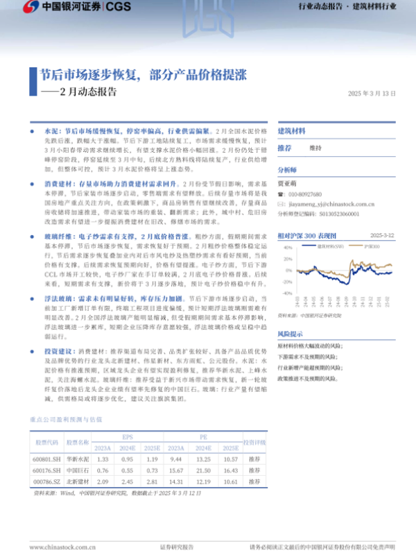 【银河证券】【20250313】建筑材料行业2月动态报告:节后市场逐步恢复,部分产品价格提涨-20页