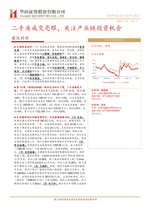 【华西证券】【20250321】2025年03月21日更新-【华西证券】建筑材料行业:二手房成交亮眼,关注产业链投资机会-23页
