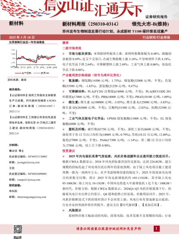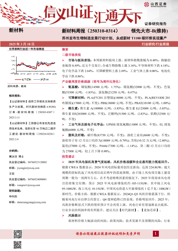 【山西证券】【20250318】新材料周报:苏州发布生物制造发展行动计划,永成新材T1100碳纤维实现量产-23页