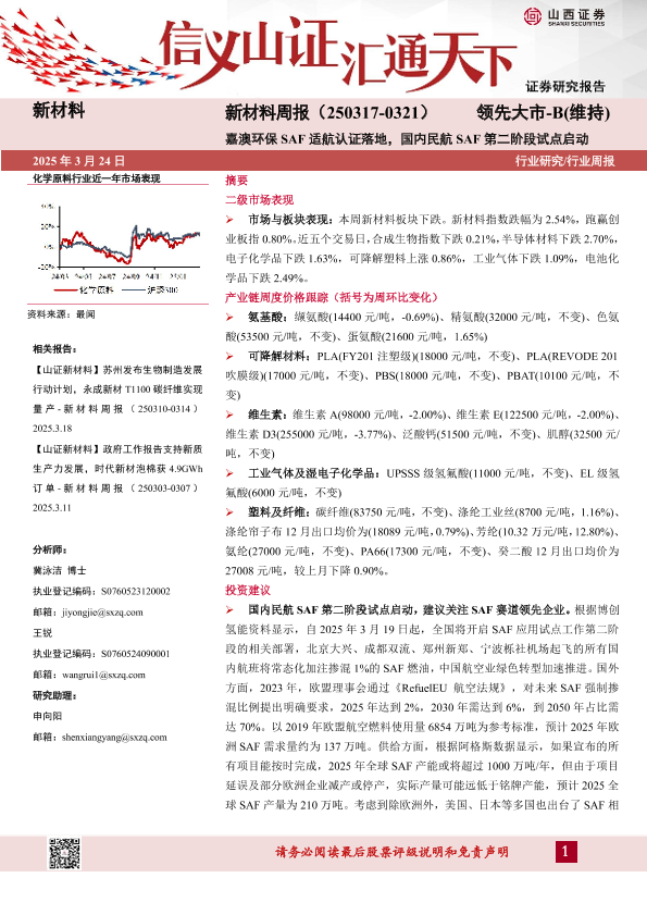 【山西证券】【20250324】2025年03月27日更新-【山西证券】新材料周报:嘉澳环保SAF适航认证落地,国内民航SAF第二阶段试点启动-23页