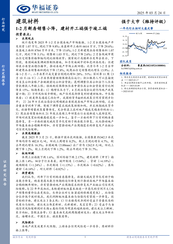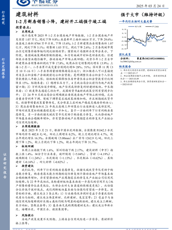 【华福证券】【20250324】建筑材料行业定期报告:1-2月新房销售小降,建材开工端强于竣工端-11页