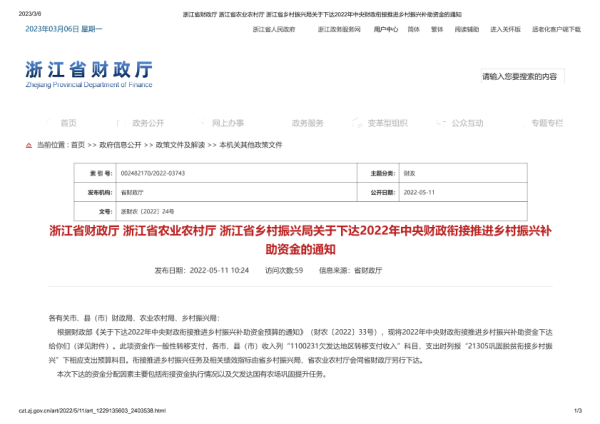 浙江省财政厅 农林牧渔 2022年 PDF 346.72 KB