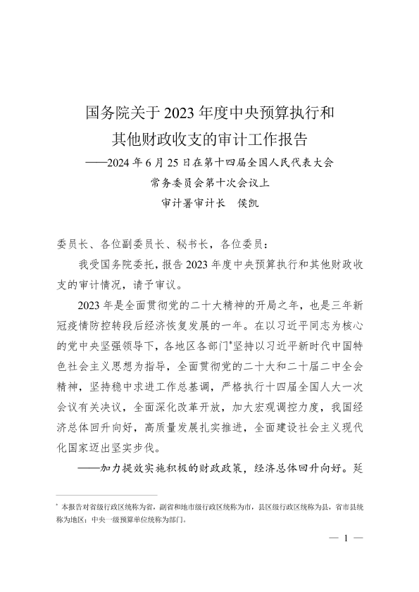 【审计署】【20240629】国务院关于2023年度中央预算执行和其他财政收支的审计工作报告-24页