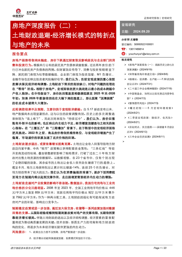 【五矿证券】【20240920】2024年09月26日更新-房地产深度报告(二):土地财政退潮~经济增长模式的转折点与地产的未来-20页