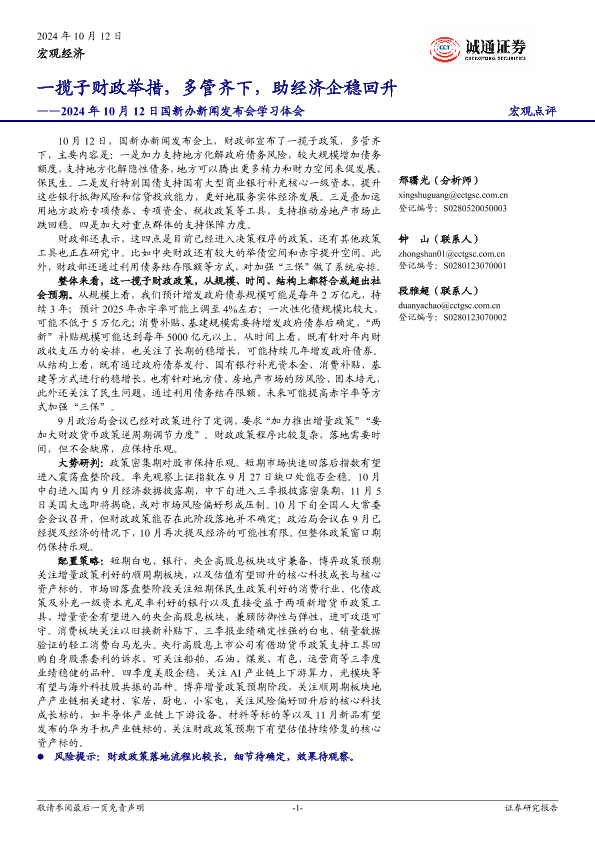 【诚通证券】【20241012】一揽子财政举措,多管齐下,助经济企稳回升——2024年10月12日国新办新闻发布会学习体会-11页