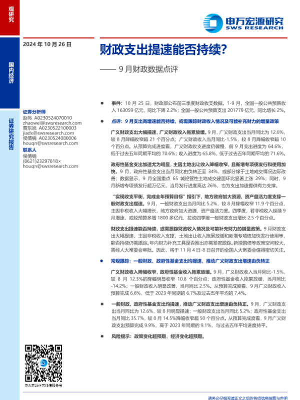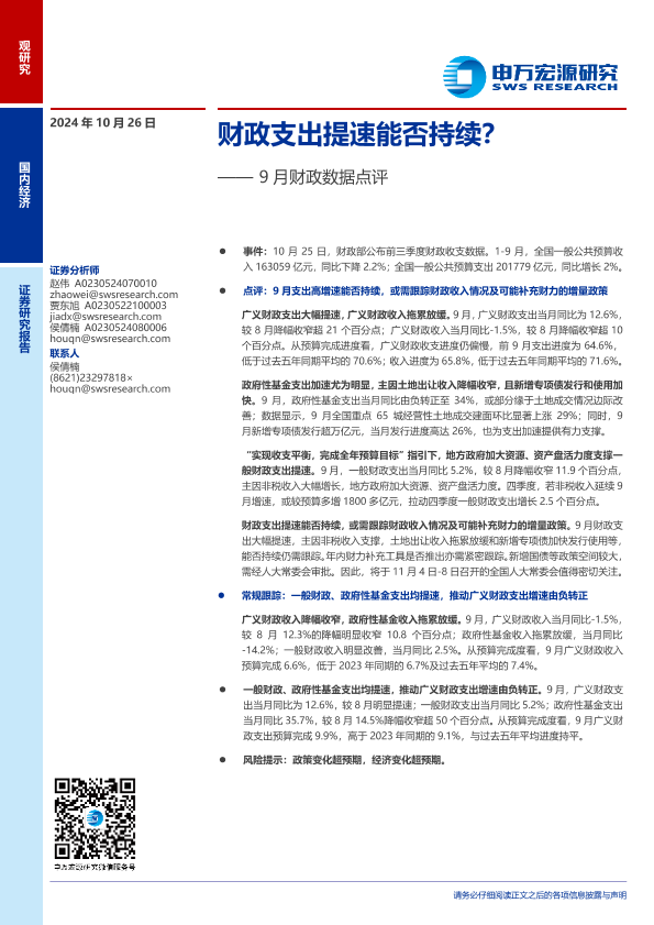 【申万宏源】【20241026】2024年11月05日更新-【申万宏源】9月财政数据点评:财政支出提速能否持续-10页