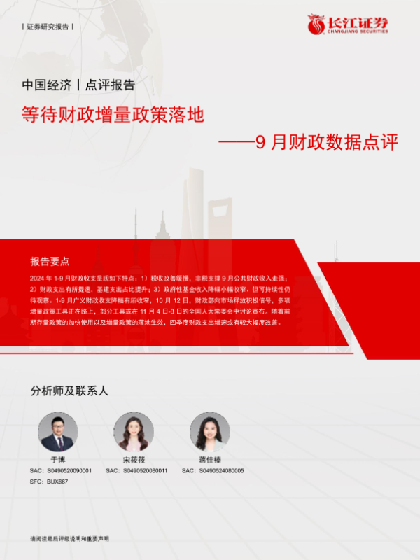 【长江证券】【20241105】等待财政增量政策落地 ——9月财政数据点评-11页