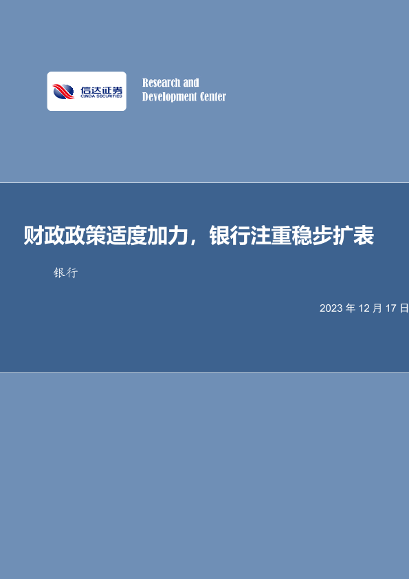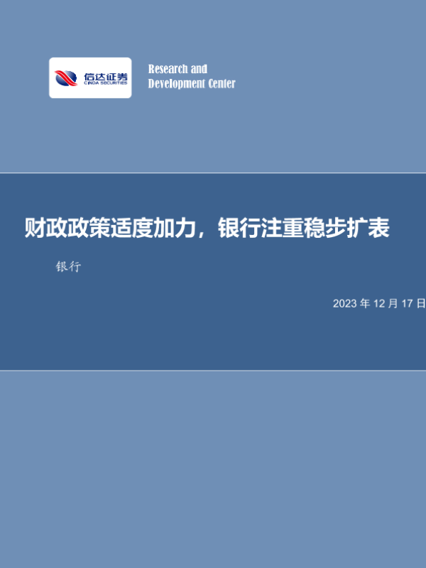 【信达证券】【20231217】财政政策适度加力,银行注重稳步扩表-15页