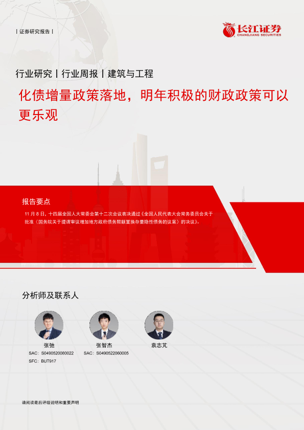 【长江证券】【20241122】建筑与工程行业:化债增量政策落地,明年积极的财政政策可以更乐观-18页
