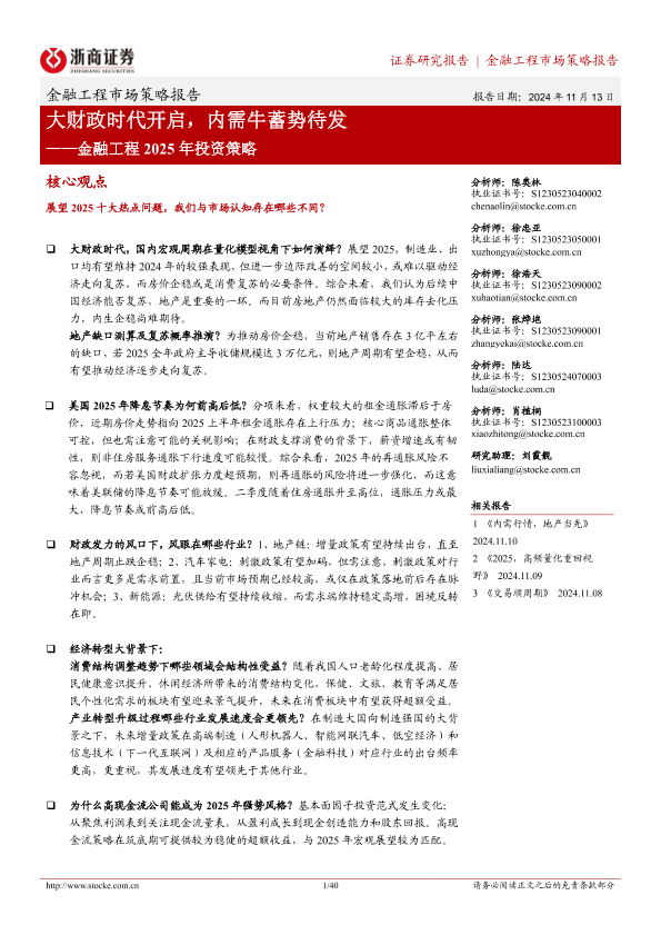 【浙商证券】【20241122】金融工程2025年投资策略:大财政时代开启,内需牛蓄势待发-40页