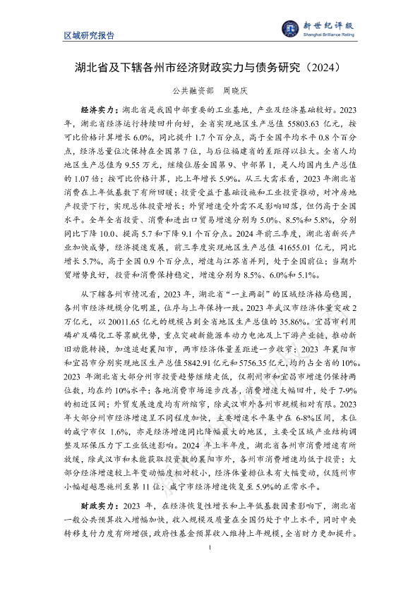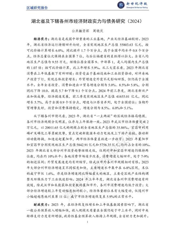 【新世纪评级】【20241130】区域研究报告:湖北省及下辖各州市经济财政实力与债务研究(2024)-37页