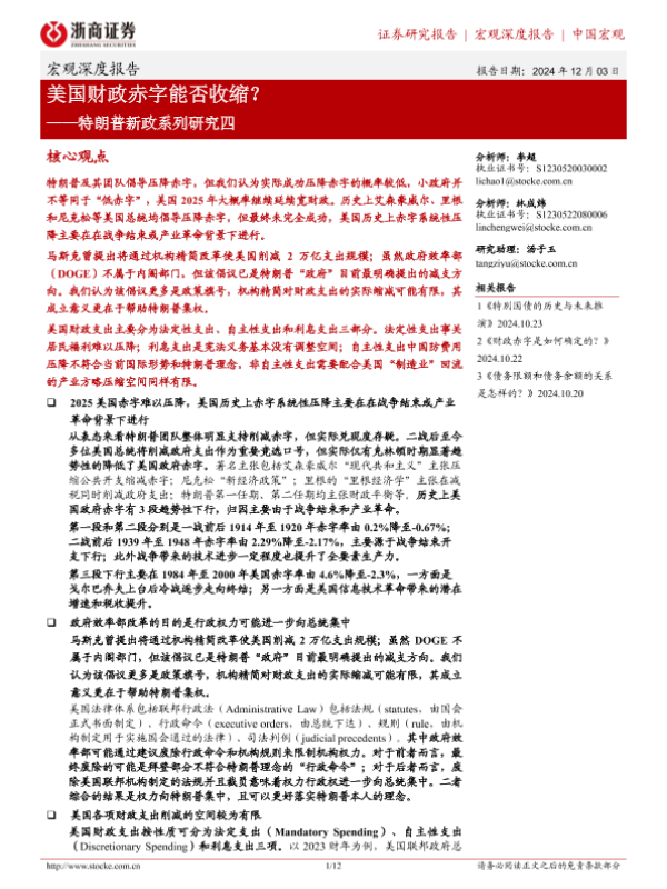 【浙商证券】【20241203】美国财政赤字能否收缩?——特朗普新政系列研究四-12页