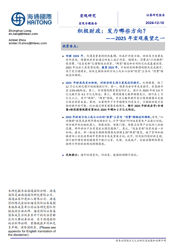 【海通国际】【20241225】2025年宏观展望之一:积极财政,发力哪些方向-17页