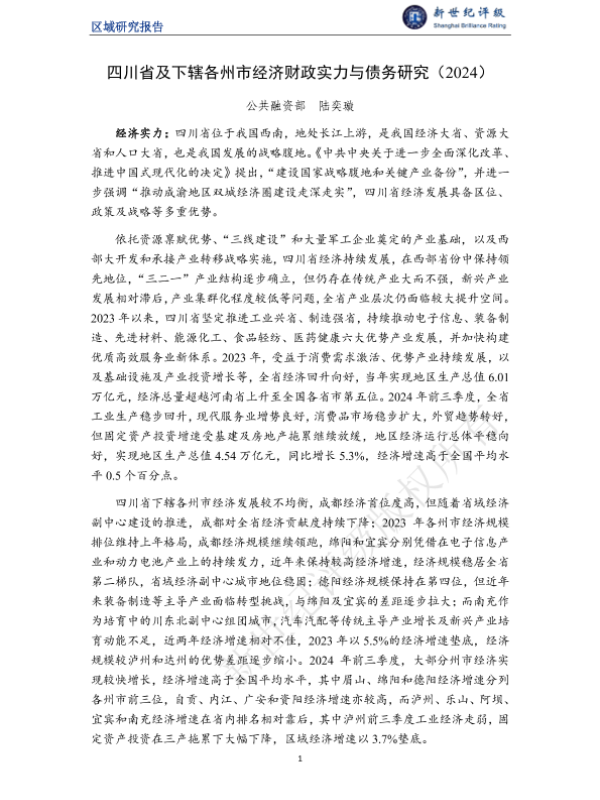 产业结构 债务状况 区域发展 四川省经济 财政实力