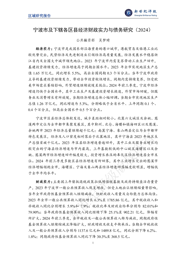 【新世纪评级】【20250102】宁波市及下辖各区县经济财政实力与债务研究(2024)-24页