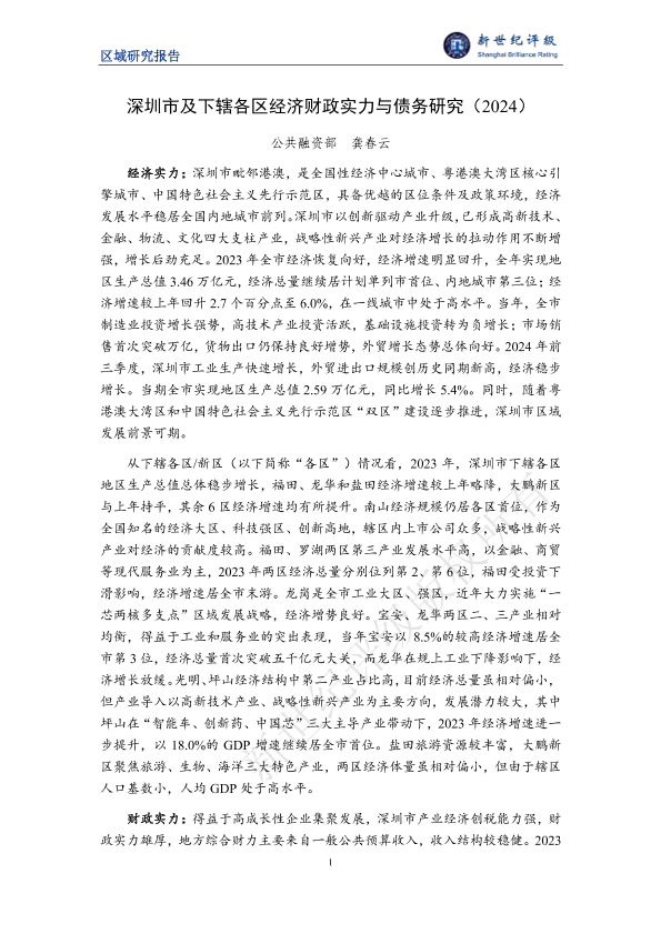 2024年 债务分析 区域发展 深圳经济 财政实力