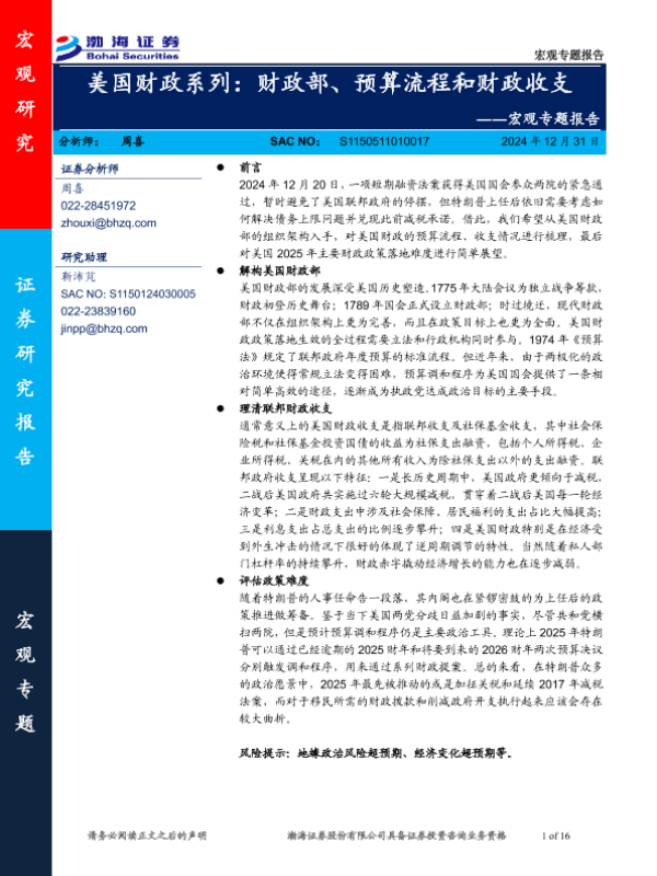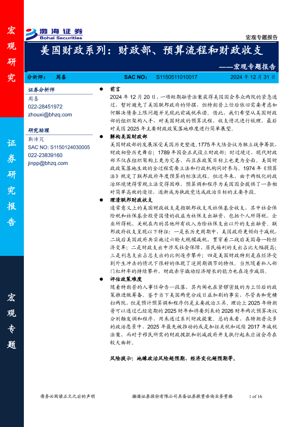 【渤海证券】【20241231】美国财政系列:财政部、预算流程和财政收支-16页