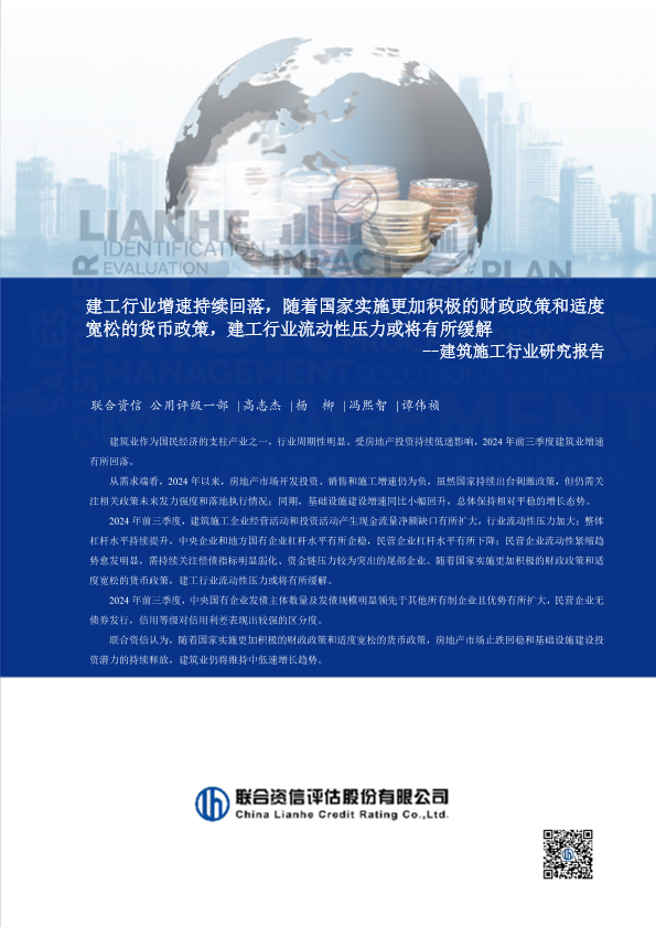 【联合资信】【202410】建工行业增速持续回落,随着国家实施更加积极的财政政策和适度宽松的货币政策,建工行业流动性压力或将有所缓解-27页