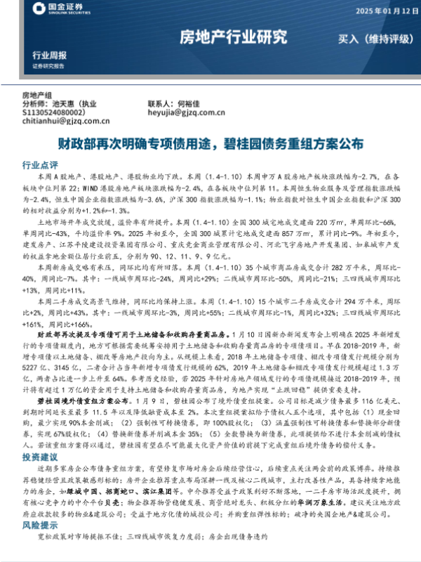 【国金证券】【20250118】2025年01月18日更新-【国金证券】房地产行业研究:财政部再次明确专项债用途,碧桂园债务重组方案公布-19页