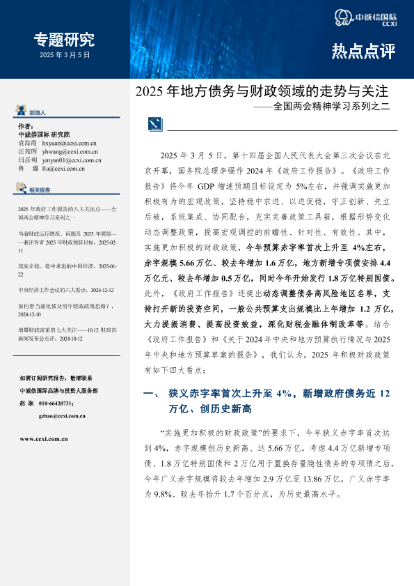 【中诚信国际】【20250308】2025年地方债务与财政领域的走势与关注-13页