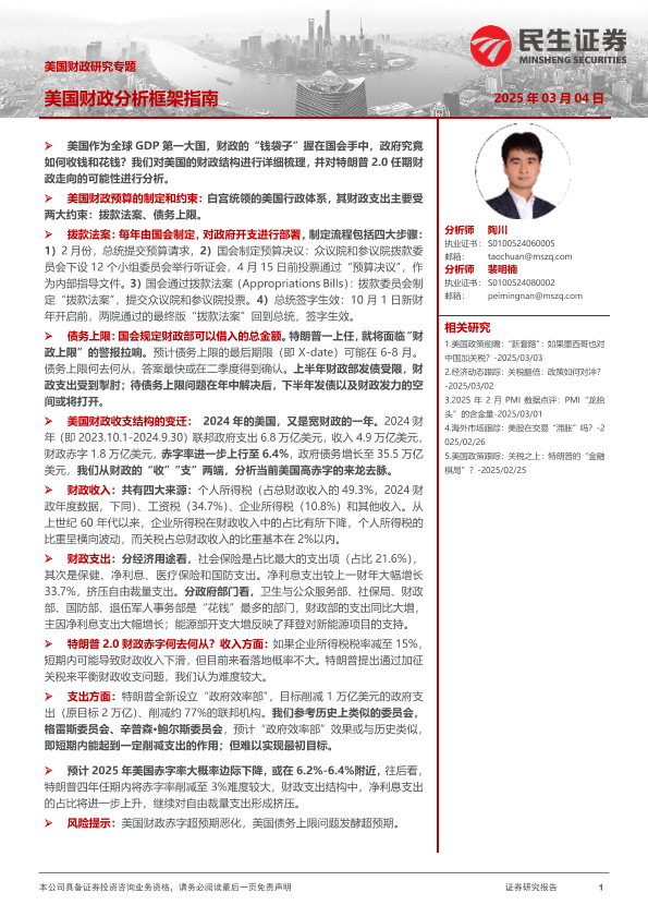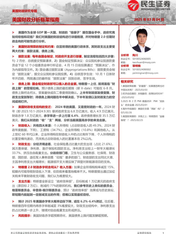 【民生证券】【20250306】美国财政研究专题:美国财政分析框架指南-23页