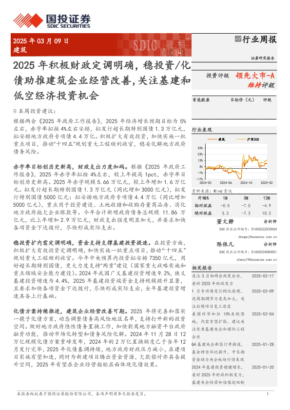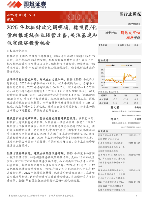 【国投证券】【20250316】2025年积极财政定调明确,稳投资、化债助推建筑企业经营改善,关注基建和低空经济投资机会-12页