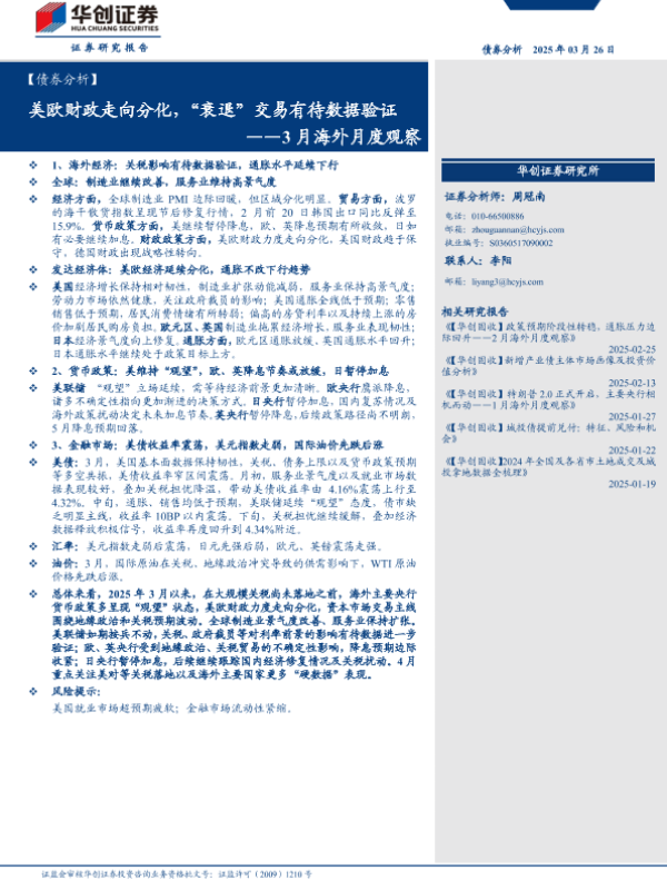 【华创证券】【20250401】3月海外月度观察:美欧财政走向分化,“衰退”交易有待数据验证-19页