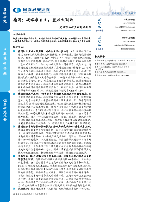 【国泰君安证券】【20250402】发达市场投资研究系列四-德国:战略求自主,重启大财政-18页