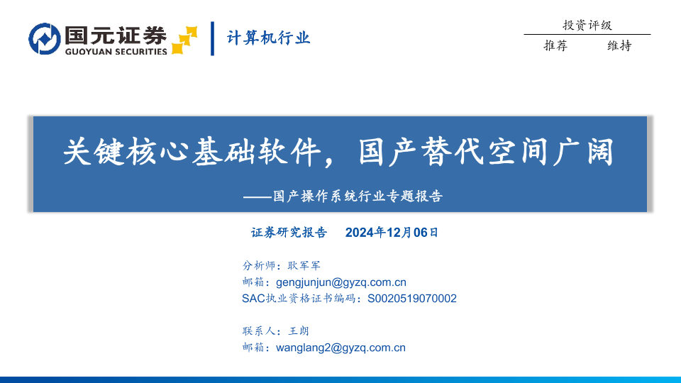 【国元证券】【20241206】国产操作系统行业专题报告:关键核心基础软件,国产替代空间广阔-38页