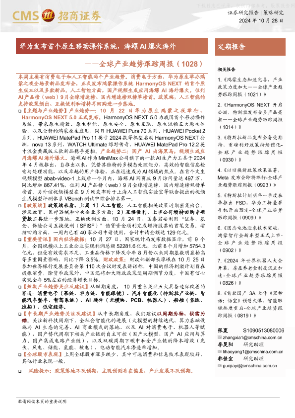 【海通证券】【20241028】2024年11月01日更新-【招商证券】全球产业趋势跟踪周报:华为发布首个原生移动操作系统,海螺AI爆火海外-29页