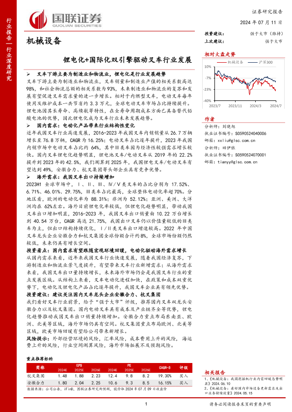 【国联证券】【20240712】机械设备行业深度研究-锂电化+国际化双引擎驱动叉车行业发展-38页
