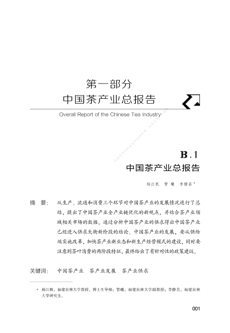 中国茶产业 供求关系 政策建议 茶叶市场 茶叶生产