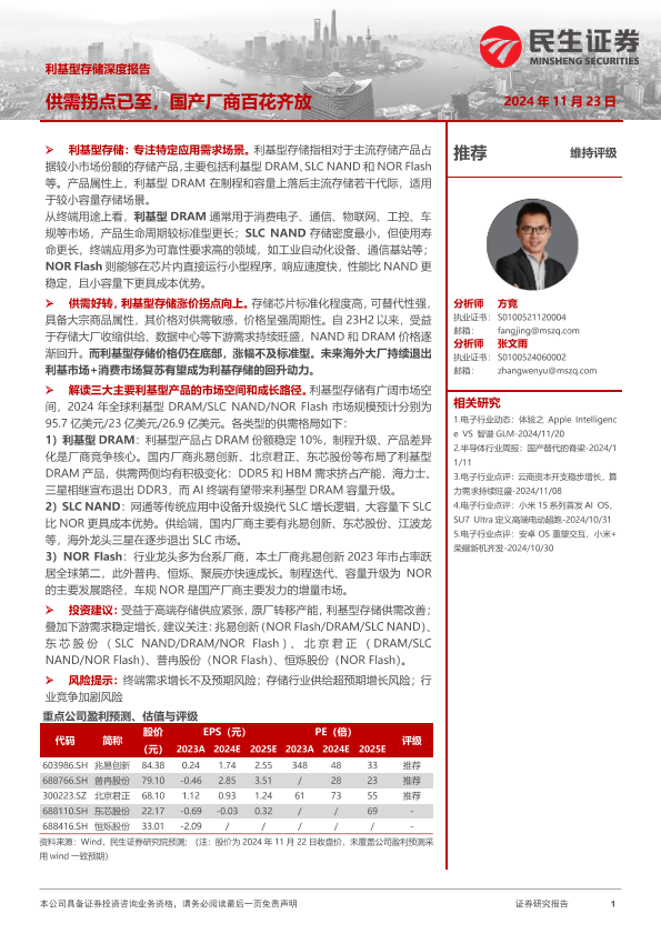 【民生证券】【20250105】2025年01月05日更新-【民生证券】利基型存储深度报告:供需拐点已至,国产厂商百花齐放-43页