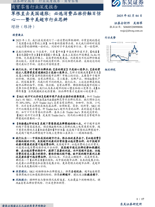 【东吴证券】【20250204】商贸零售行业深度报告-草根直击美国通胀-必选消费品涨价触目惊心——暨中美超市行业思辨-17页