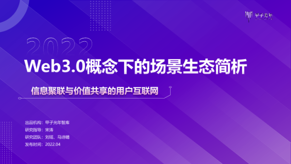 【甲子光年智库】【20220401】Web3.0概念下的场景生态简析-32页
