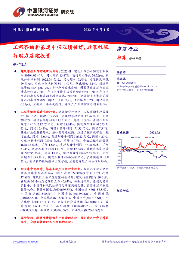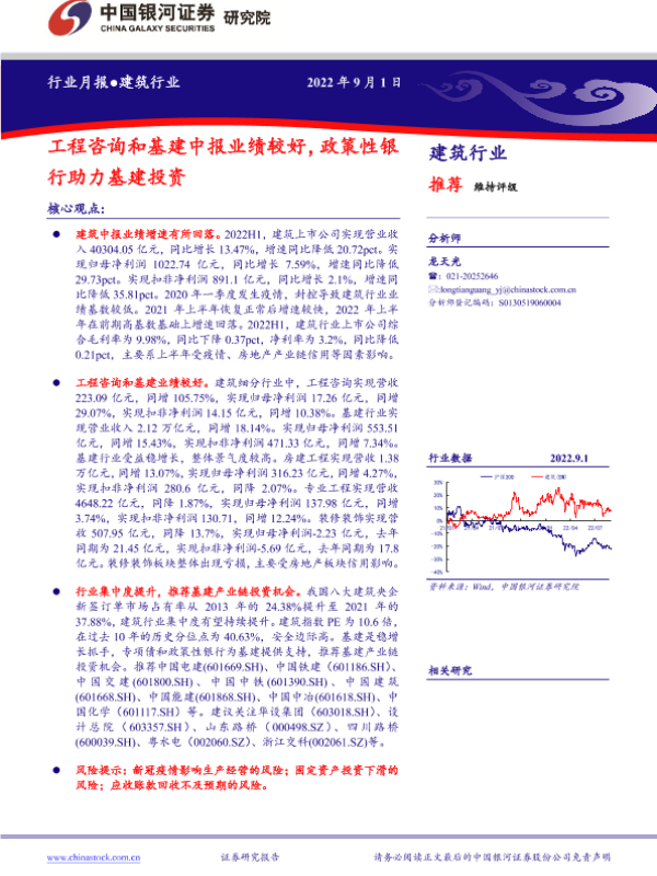 【银河证券】【20220901】2022年09月01日更新-银河证券-建筑行业月报:工程咨询和基建中报业绩较好,政策性银行助力基建投资-14页