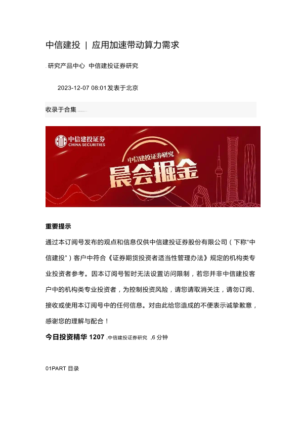 【中信建投证券】【20231207】2023年09月21日更新-中信建投应用加速带动算力需求-16页