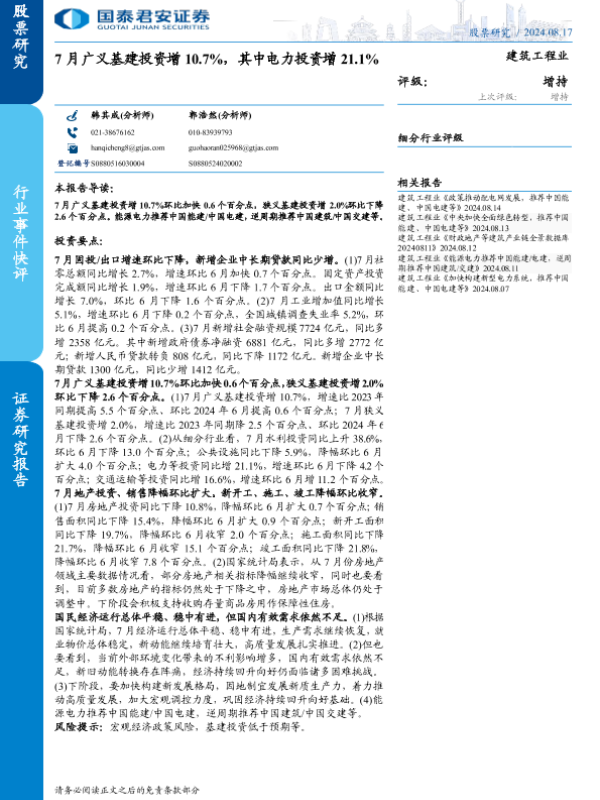 【国泰君安证券】【20240830】2024年08月30日更新-【国泰君安】建筑工程行业:7月广义基建投资增10.725-240817-31页