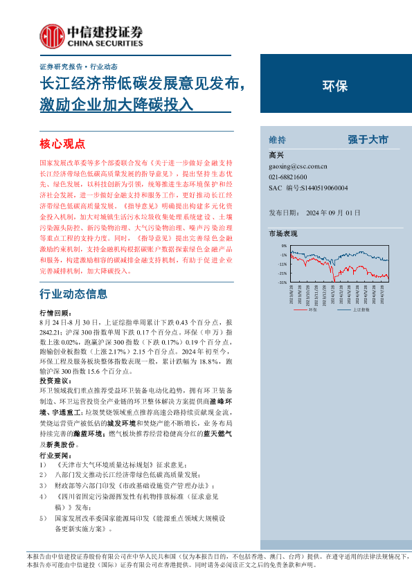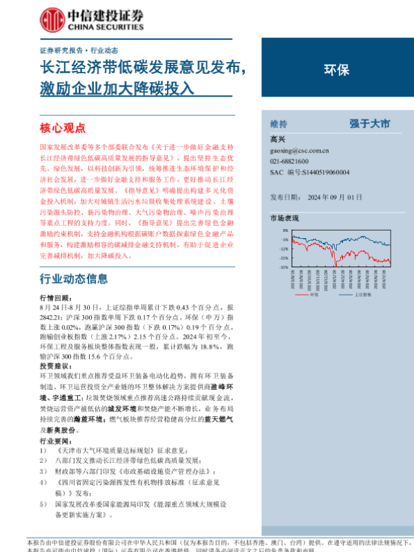 【中信建投证券】【20240901】2024年09月01日更新-【中信建投】环保行业:长江经济带低碳发展意见发布,激励企业加大降碳投入-11页