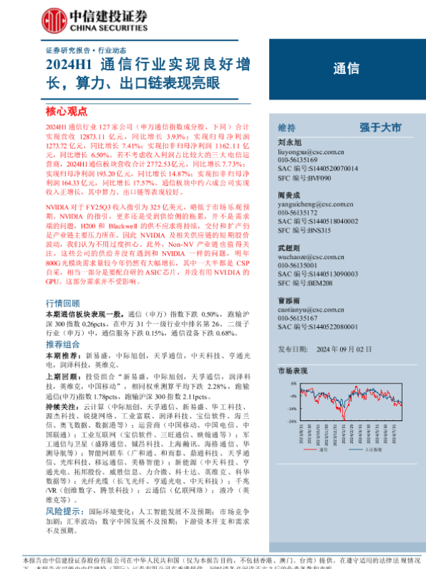 【中信建投证券】【20240902】2024年09月02日更新-【中信建投】通信行业:2024H1通信行业实现良好增长,算力、出口链表现亮眼-11页