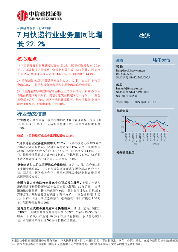 【中信建投证券】【20240819】2024年09月01日更新-【中信建投】物流行业动态:7月快递行业业务量同比增长22.2%-20页