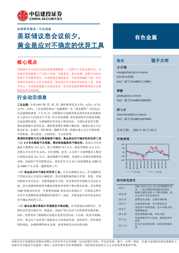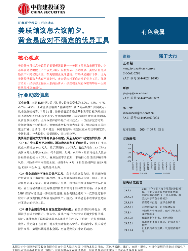 【中信建投证券】【20240908】2024年09月23日更新-【中信建投】有色金属行业:美联储议息会议前夕,黄金是应对不确定的优异工具-12页
