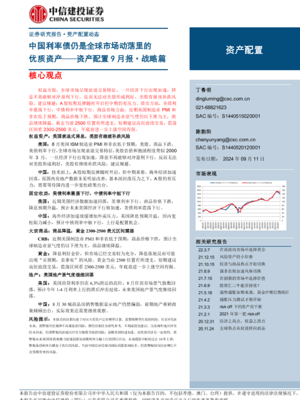 【中信建投证券】【20240911】2024年09月23日更新-【中信建投】资产配置9月报·战略篇:中国利率债仍是全球市场动荡里的优质资产-22页