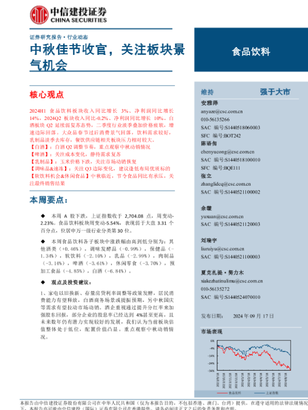 【中信建投证券】【20240917】2024年09月29日更新-【中信建投】食品饮料行业:中秋佳节收官,关注板块景气机会-23页