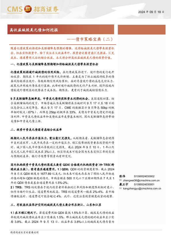 【海通证券】【20240918】2024年09月30日更新-【招商证券】债市策略宝典(二):高收益城投美元债如何挖掘-14页