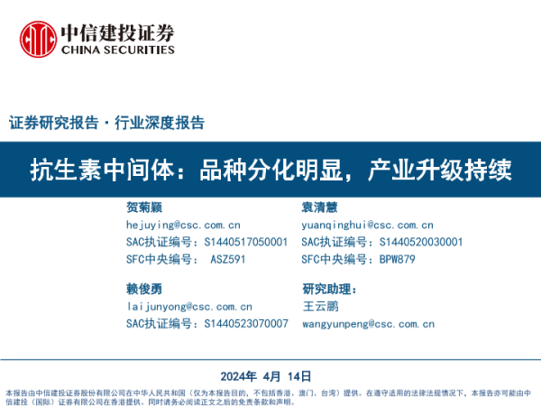 【中信建投证券】【20241009】抗生素中间体:品种分化明显,产业升级持续-67页