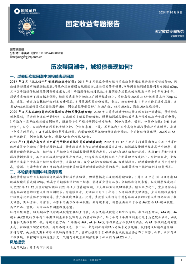 【国金证券】【20241016】2024年10月16日更新-【国金证券】固定收益专题报告:历次赎回潮中,城投债表现如何-15页
